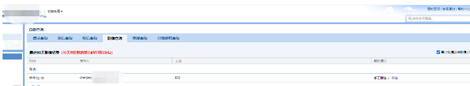 (2)“徹底刪除郵件”:可以恢復企業(yè)郵箱在10天內徹底刪除的部分郵件,通過網頁版登錄企業(yè)成員郵箱【自助查詢->刪信查詢】進行恢復的操作。